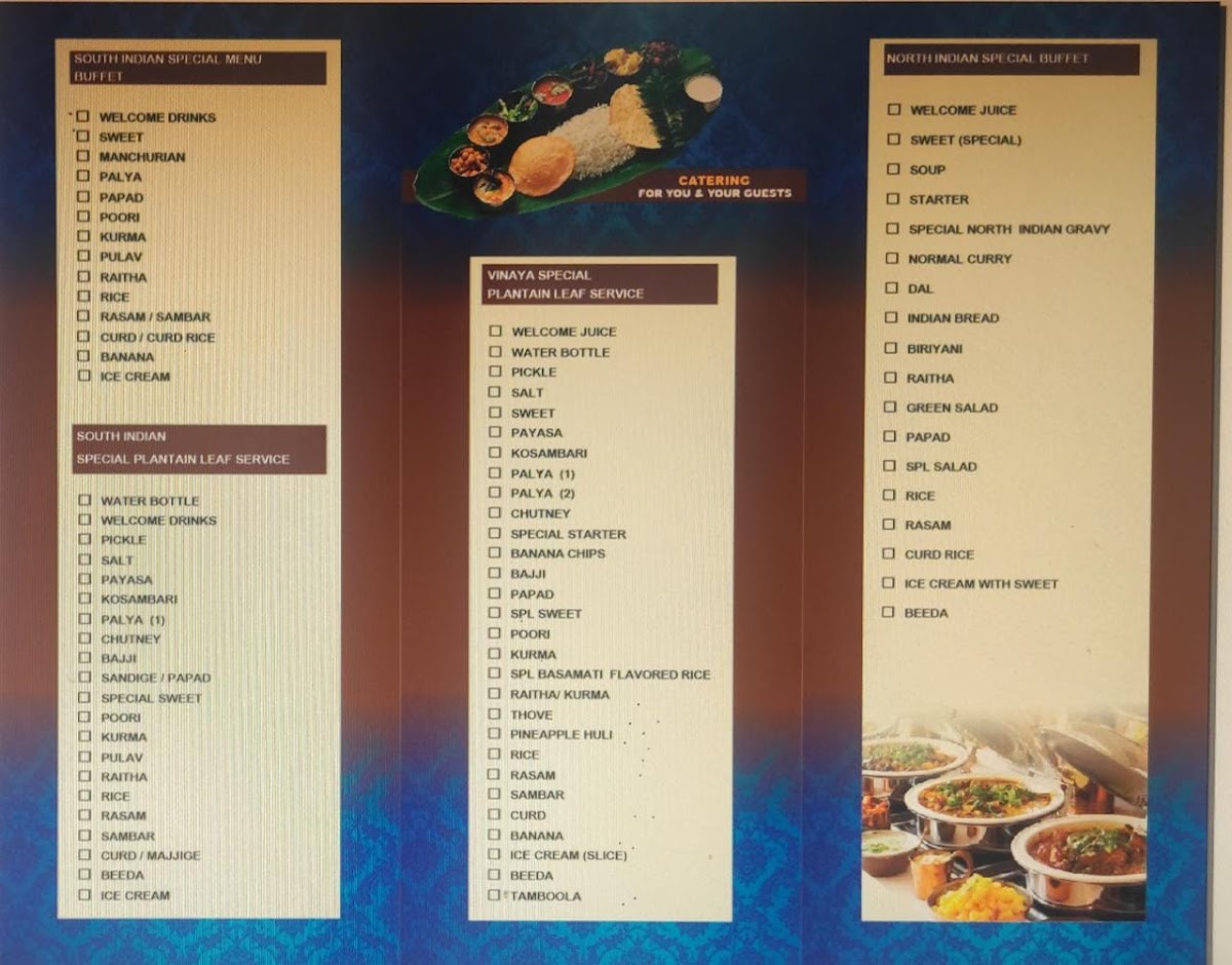 The menu is a delightful journey through South Indian cuisine, featuring popular dishes such as Paneer Paratha, Curd Rice, Bisi Bele Bath, and an array of delicious Dosas. Don’t miss their signature Strawberry Milkshake, which has garnered rave reviews for its consistent taste. Whether you're craving quick bites or hearty meals, Vinaya Café meets both needs with swift service at an affordable price.